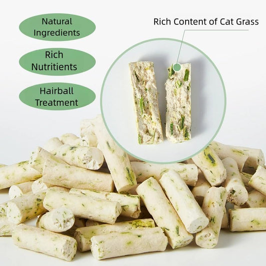 3.5Oz Cat Grass Teething Stick for Cat, Natural Cat Grass Treats for Indoor Cats, Freeze Dried Cat Grass Sticks with Goat Milk for Teeth Cleaning and Hairball Treatment
