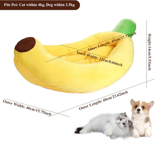 Banana Cat Bed Breathable Thermal Banana Dog Bed Soft Cotton Filled Cute Cat Bed with Detachable Cushion Machine Washable Pet Bed for Small Sized Cats &Dogs, Dog Bed