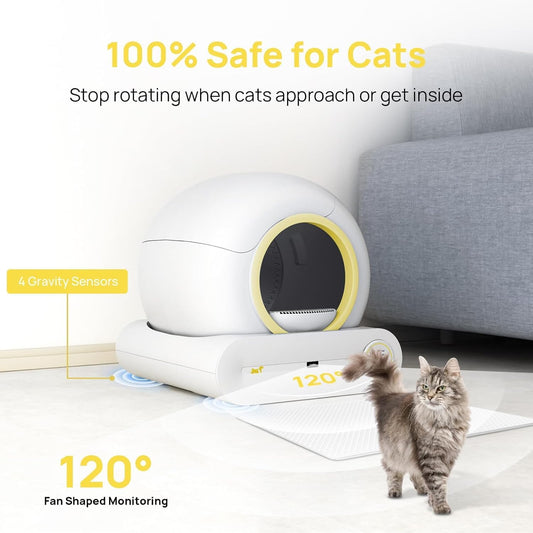 Automatic Cat Litter Box Self Cleaning, Smart Kitty Litter Box Automated Cleaning with APP Control, Low Entry Odorless Electric Litter Box Litter Robot for Multiple Cats