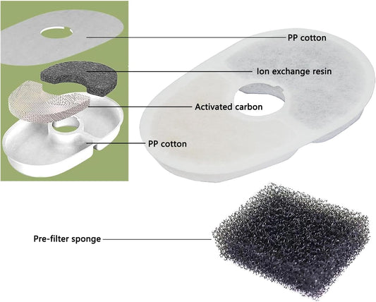 8 Sets Pet Fountain Water Filters W/Filter Sponge Compatible with Avocado Water Fountain Replacement Filters for Cat Dog Small Animal Water Dispenser Filters