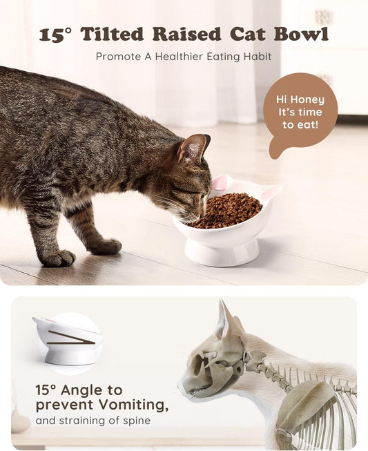 Raised Cat Food Bowl Ceramic 15° Tilted Cat Food Bowls Protect Cat'S Spine anti Vomiting Backflow Prevention Cat Bowls for Adult Cats